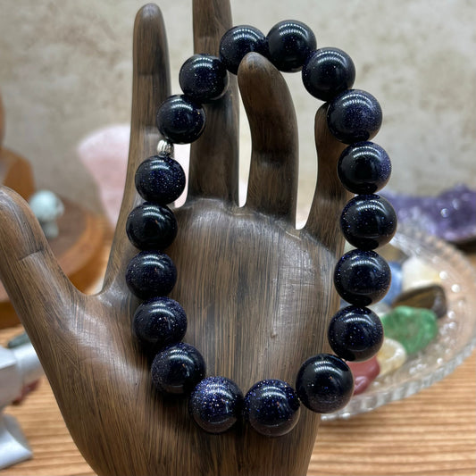 Blue Goldstone Stretchy Bracelet 12mm beads